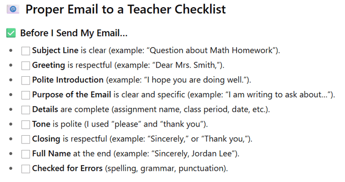 Email should be checked for updates each morning. If the teacher has requested any material or communication, respond promptly. These skills, along with many others in this article, are key procedures to both school and post secondary success. When this type of accountability can be maintained, students can continue moving forward with their progress. With strong student-teacher communication and collaboration, students can keep track of their progress. They will be aware of anything hindering their learning or grades and immediately rectify it. Strong, clear, routine interpersonal skills will last a lifetime for any goals that your students set out to achieve.
