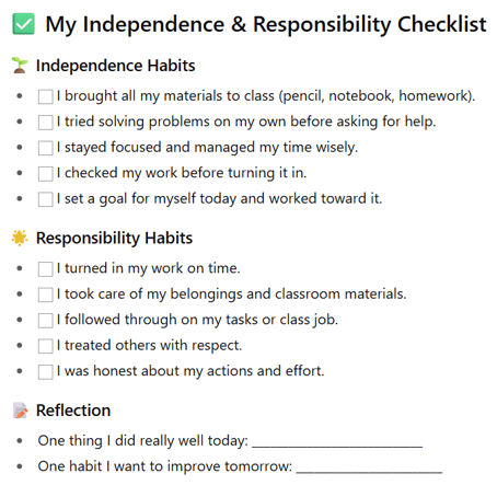 Building independence and responsibility sets students up for lifelong success. There should be daily independence habits engrained in your students routine. Have your student set their alarm each night, assist them in reviewing the goals or tasks for the next day, and demonstrate how to check that prior items were completed. They can show responsibility by making their own lunch, engaging in a specific household chore or assisting a sibling through assignments. Students tend to demonstrate an internal sense of confidence when they complete independent, responsible tasks. This token of confidence translates immensely when approaching new or challenging concepts. If something becomes too difficult, help students ask for help. It’s vital that we raise students that know both independence and trust. Students can schedule a conference with a teacher, attend office hours or format a well written email to request any kind of assistance.